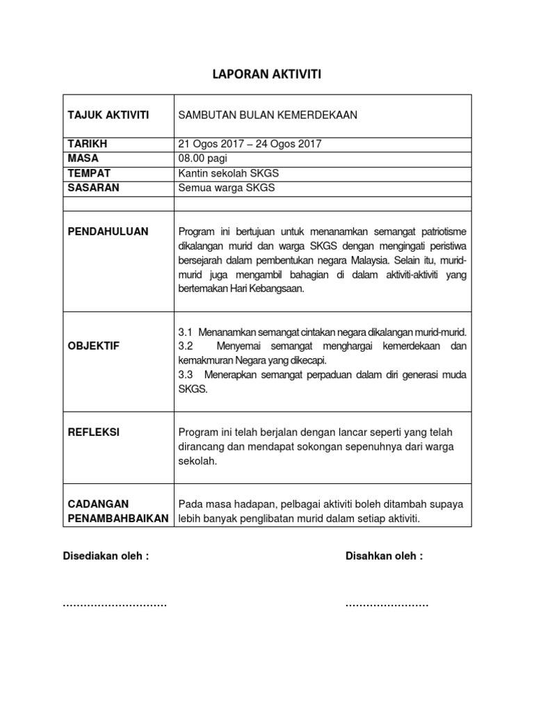 Laporan Sambutan Bulan Kemerdekaan Pdf