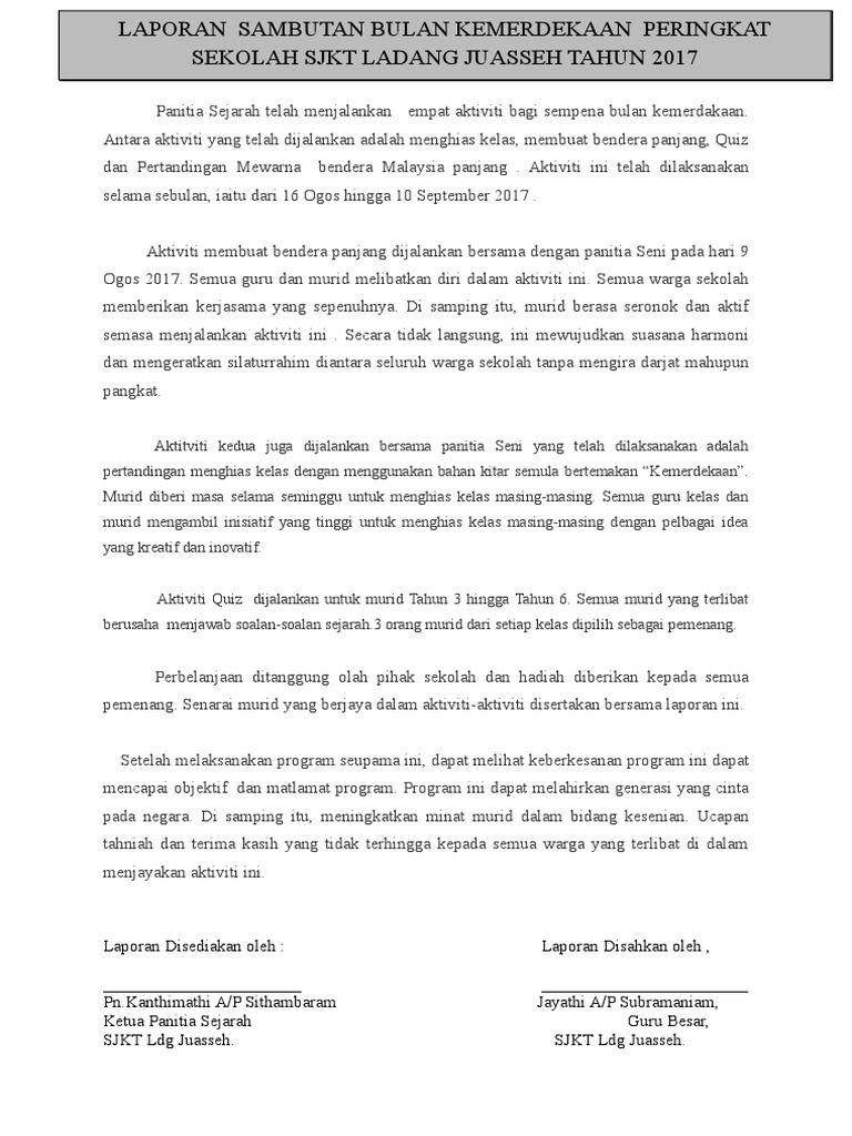 Contoh Karangan Laporan Sambutan Kemerdekaan Peringkat Sekolah Pdf